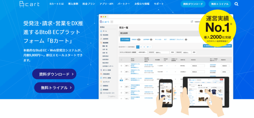 BカートはBtoBの受発注業務をEC化するクラウドサービスです。BtoBに特化した機能を複数搭載している他、サービス連携が豊富なことから、企業相手のEC事業を展開する場合におすすめです。