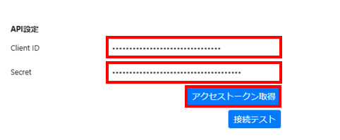 入力後、「アクセストークン取得」ボタンをクリックします。